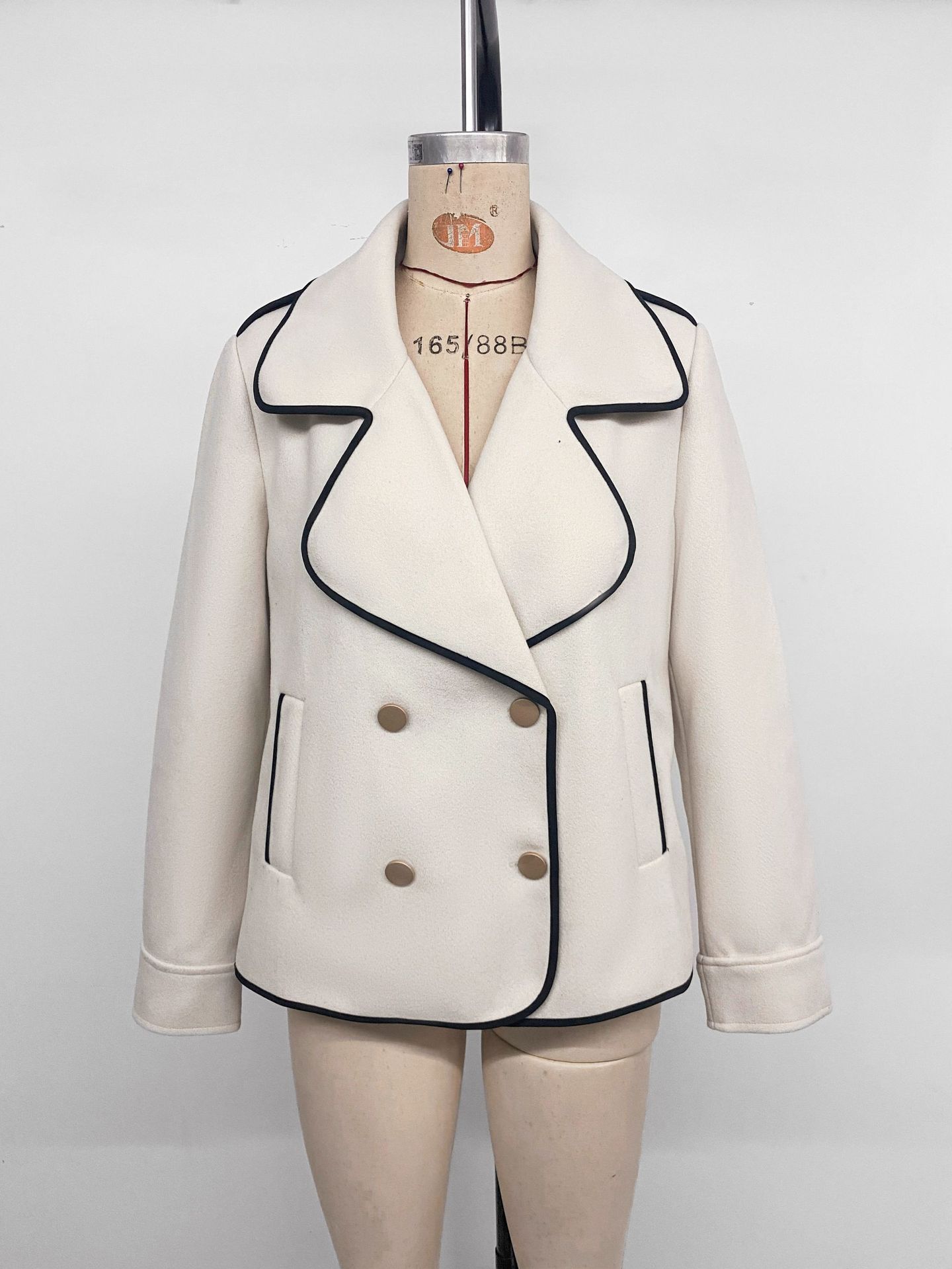 Casual Minimalist Warm Short Wool Coat - Beige / L