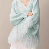 Ruffled Gauze Knitting Sweater Cardigan Long Sleeve