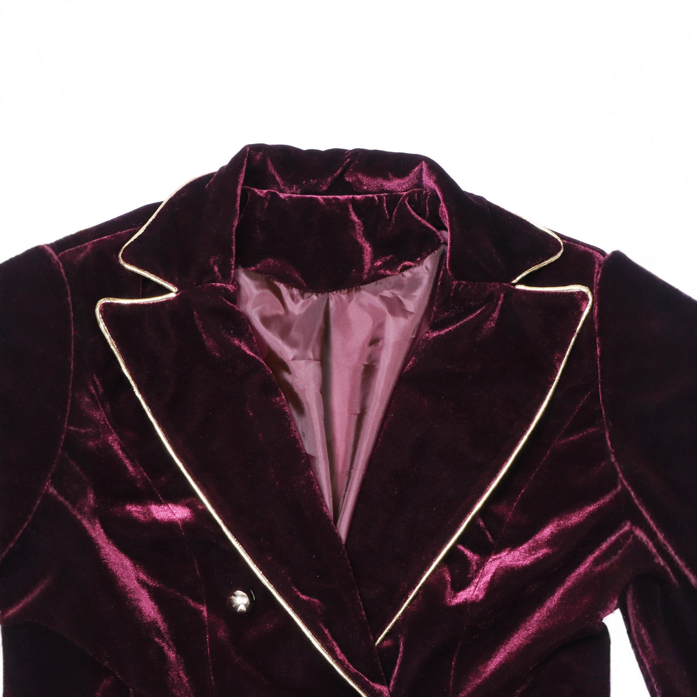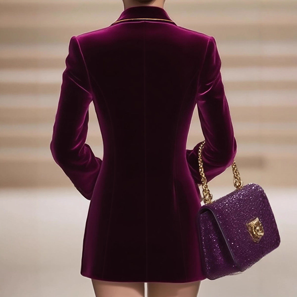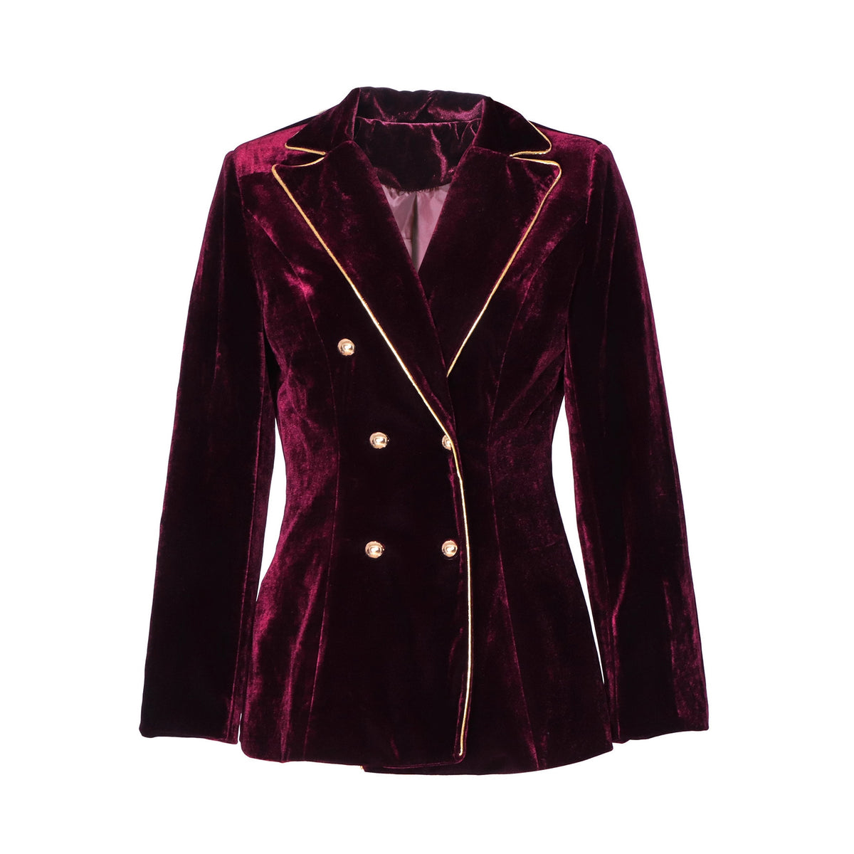 SpringSummer New Arrival Slim-fit Double-breasted Fuzzy Patchwork Evening Gown Top - Reddish Brown / L