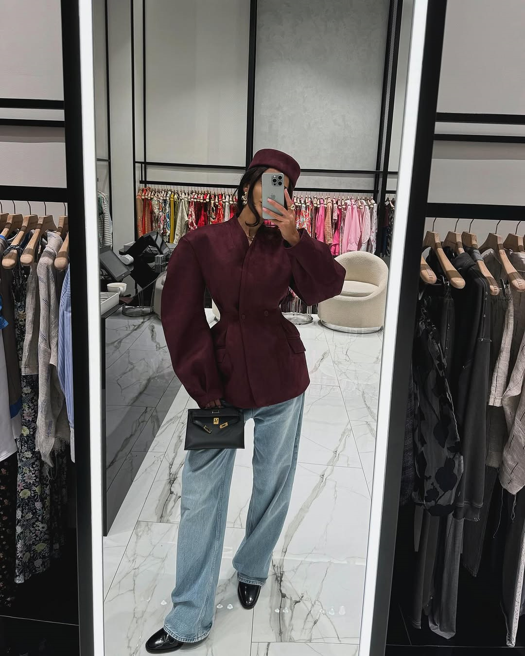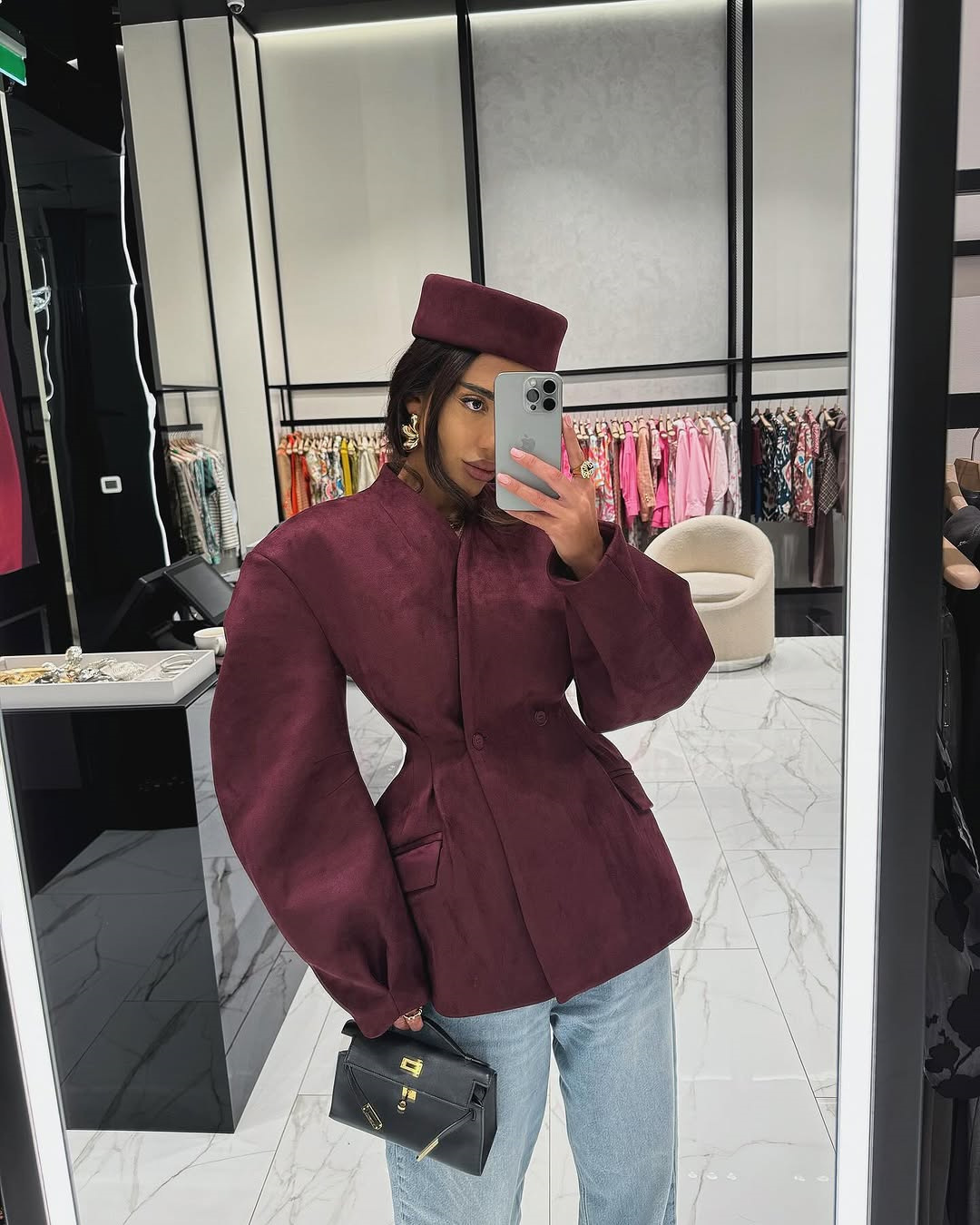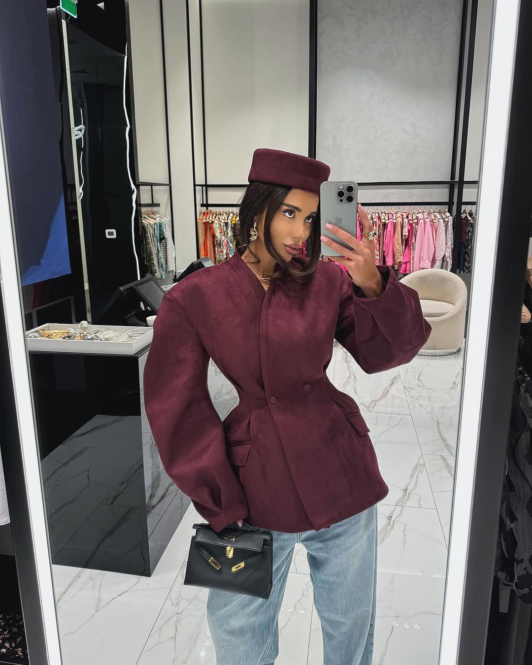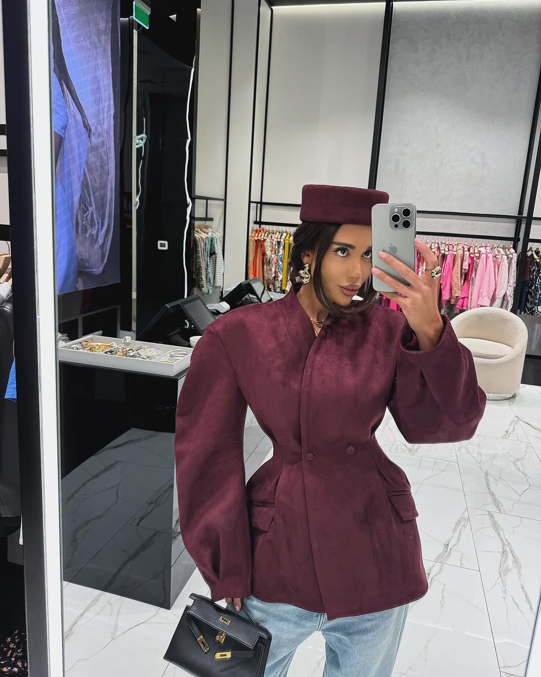 Women's 2025 Spring New Fashion Slim-Fit Wine Red V-Neck Double-Breasted Long Sleeve Short Jacket