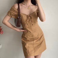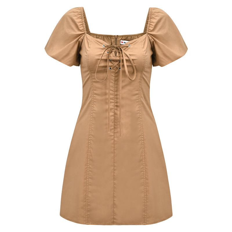 Women's Fashion Bubble Sleeve Dress - Khaki / L