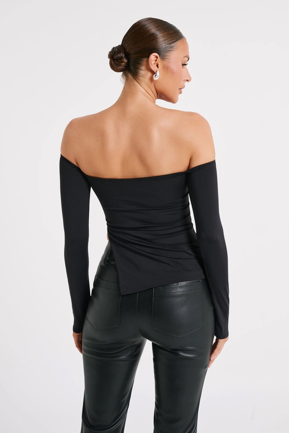 Women's Off-shoulder Shoulder-baring Slim Long Sleeve Top - Black / L