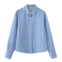 Striped Poplin Cotton Long-sleeved Lapel Shirt