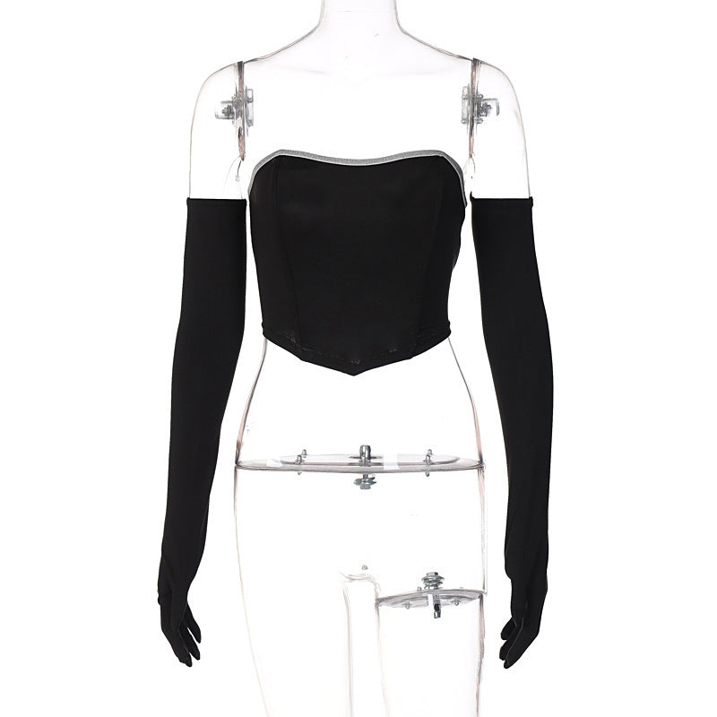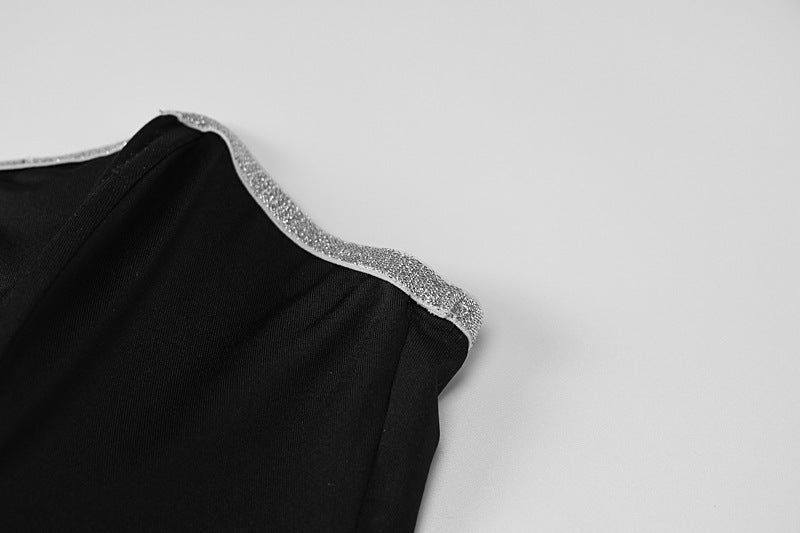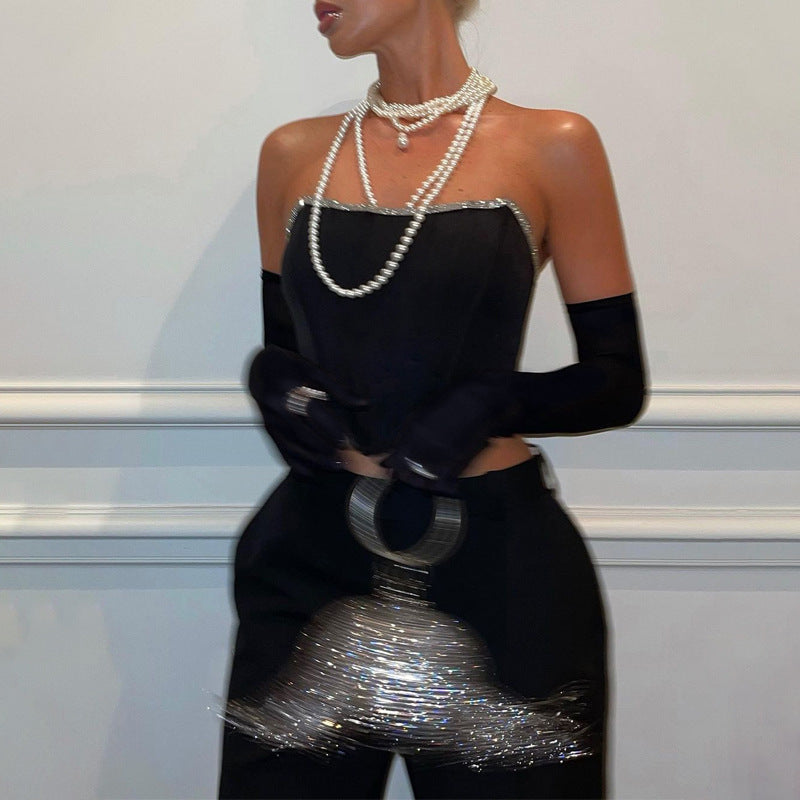 The New Women's Fashion Solid Color Set With Diamonds - Black / L