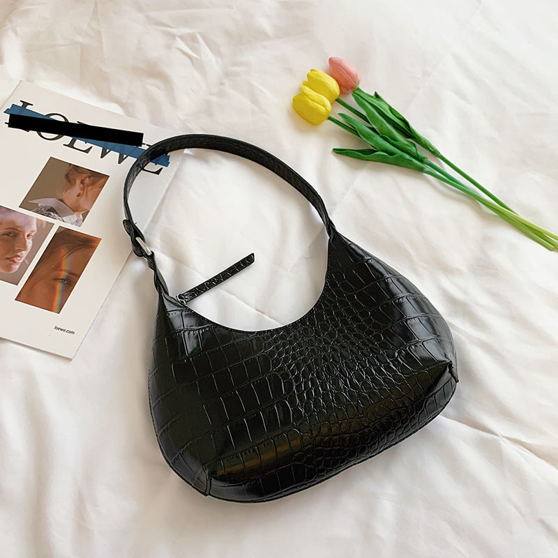 Fashion Half-moon One-shoulder Armpit Bag - Black