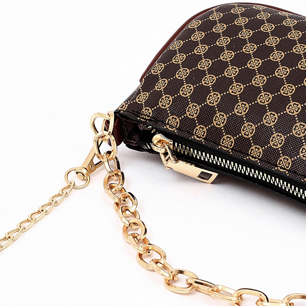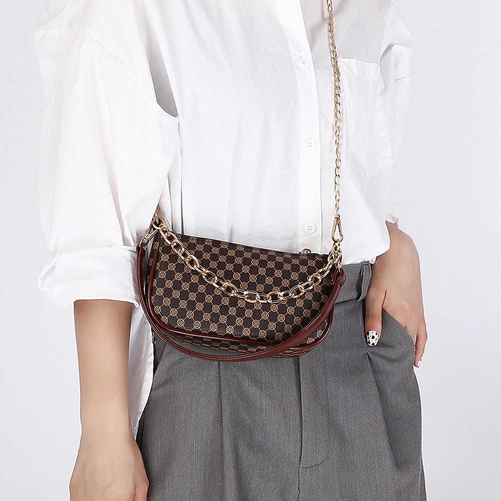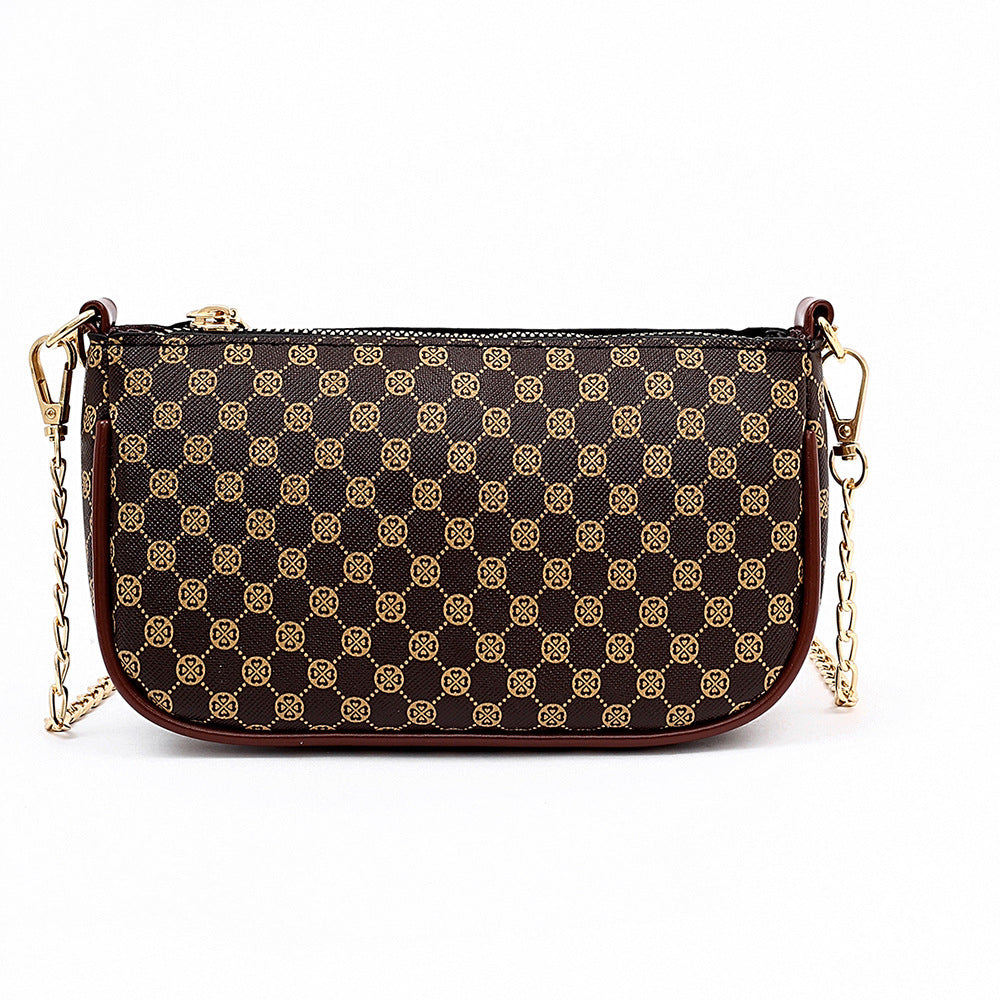 Soft face printed chain crossbody bag - Brown