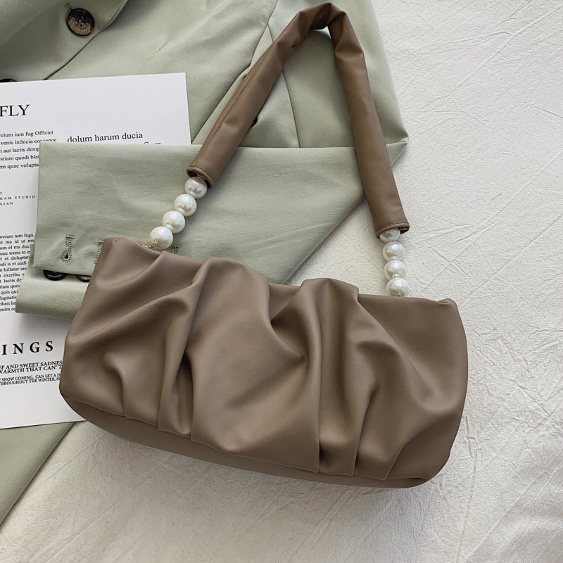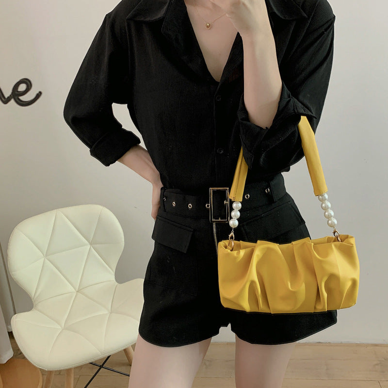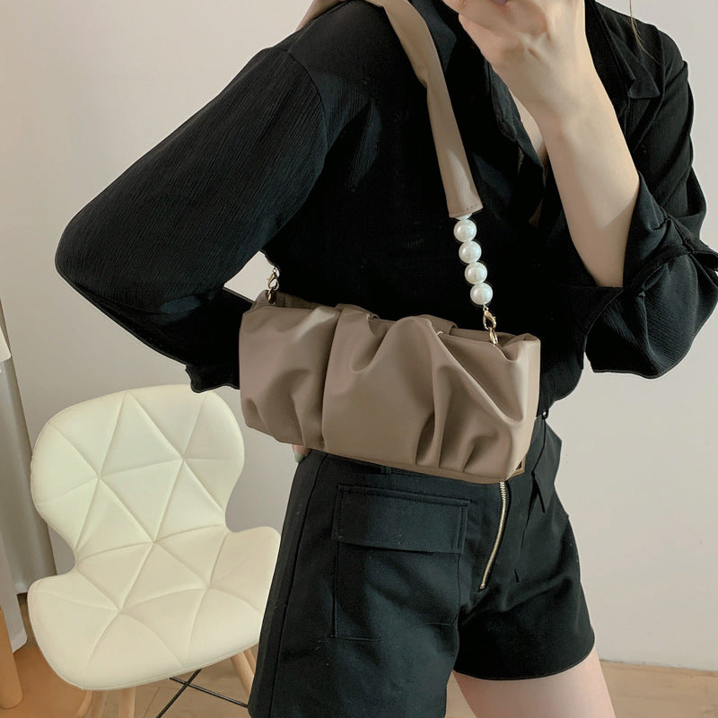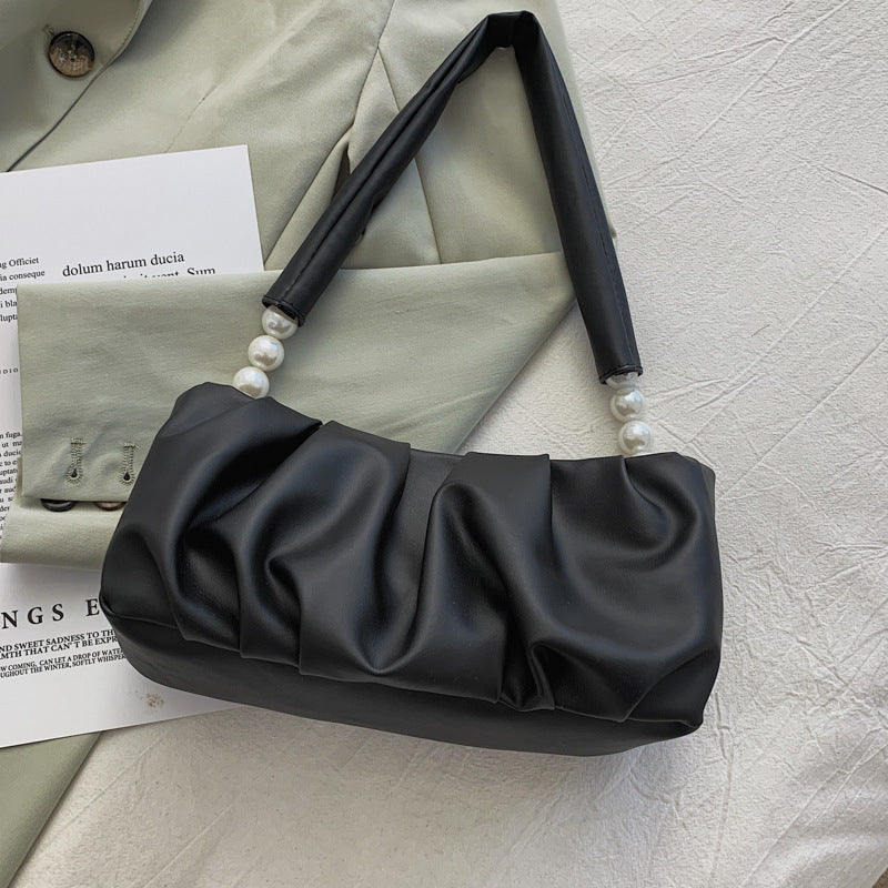 Temperament Portable Messenger French Cloud Bag Folds - Black