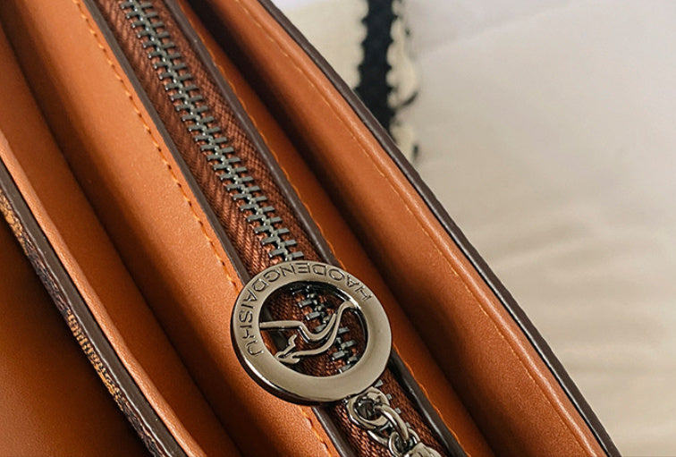 Women's Fashion Retro Printed Small Square Bag - Khaki
