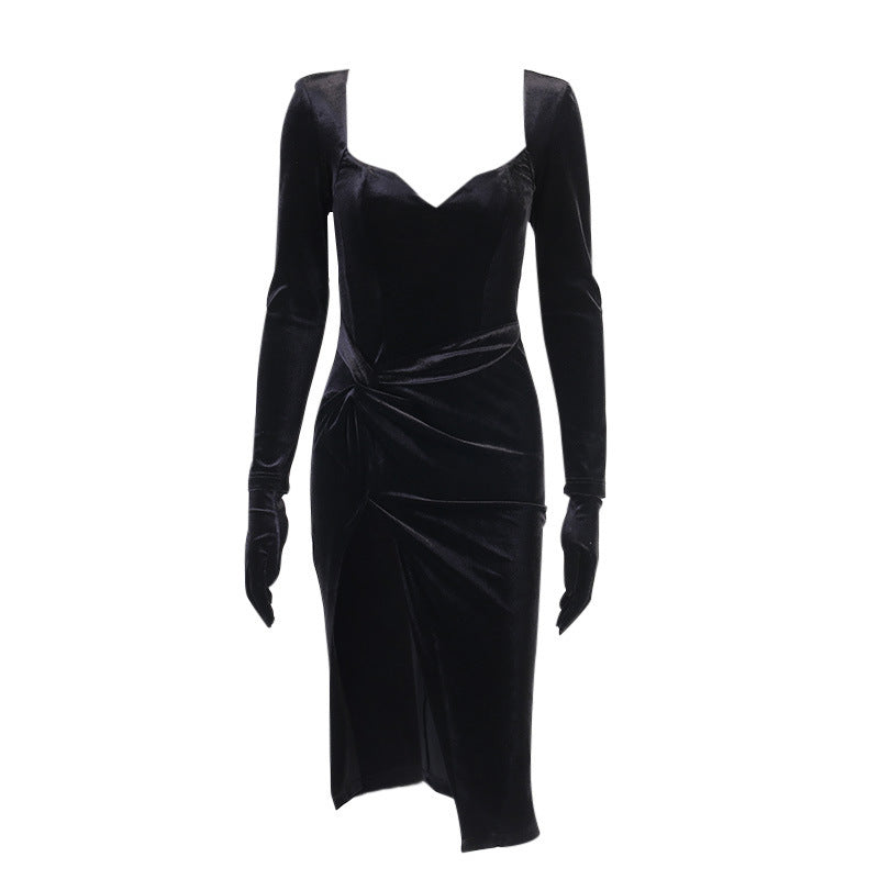 Fashion Sexy V-neck Twisted Split Skirt - Black / L