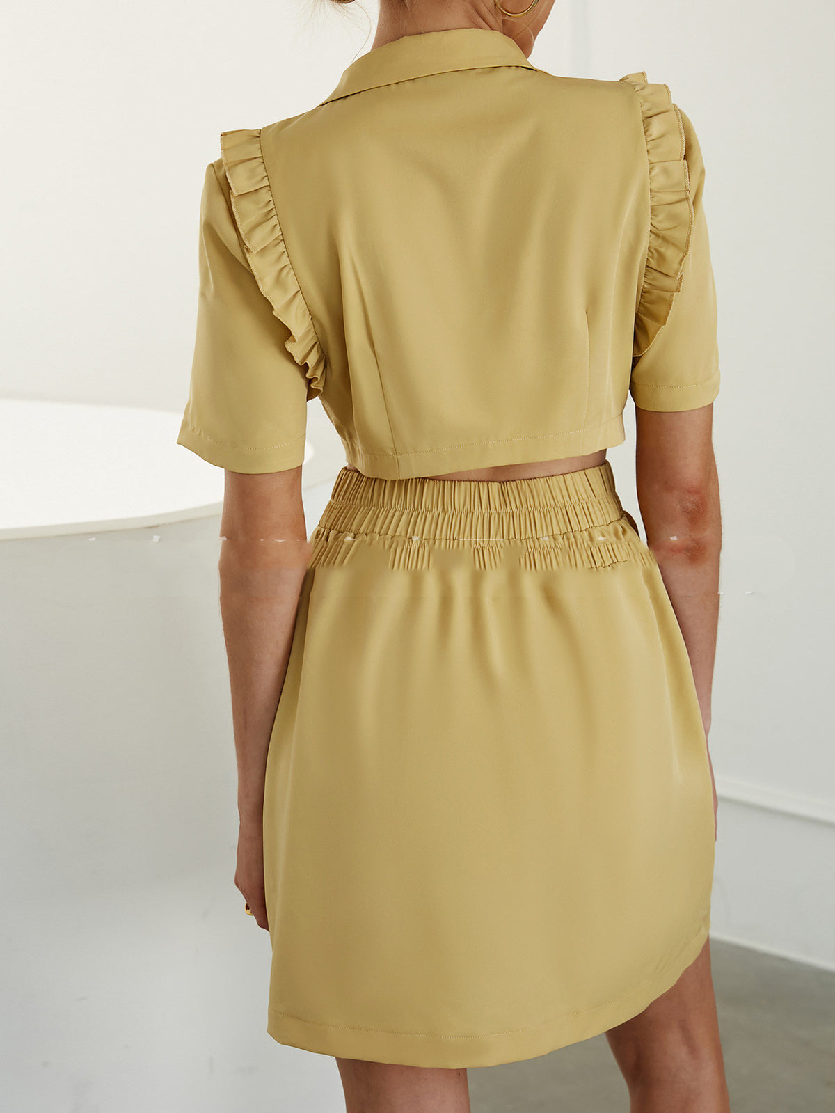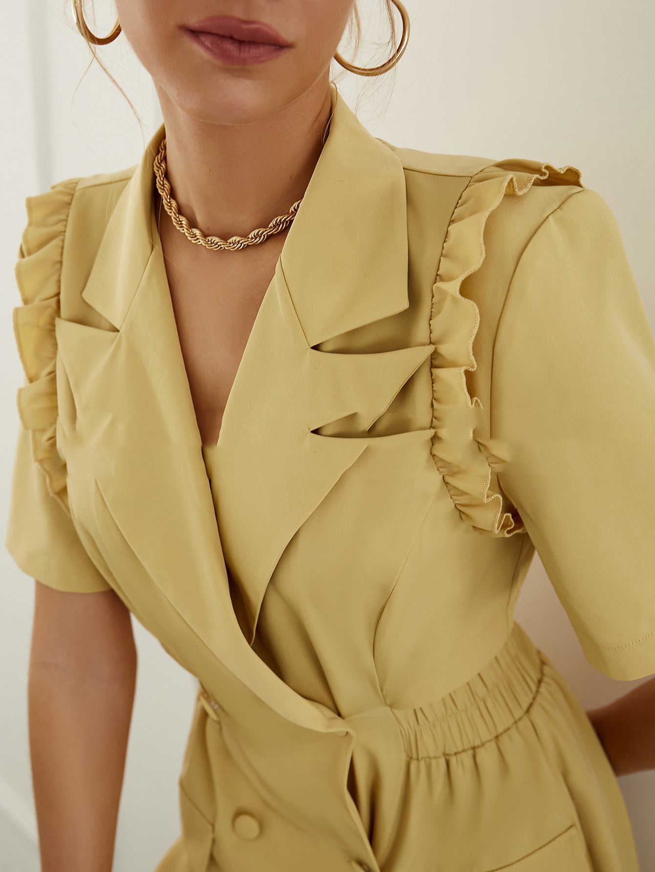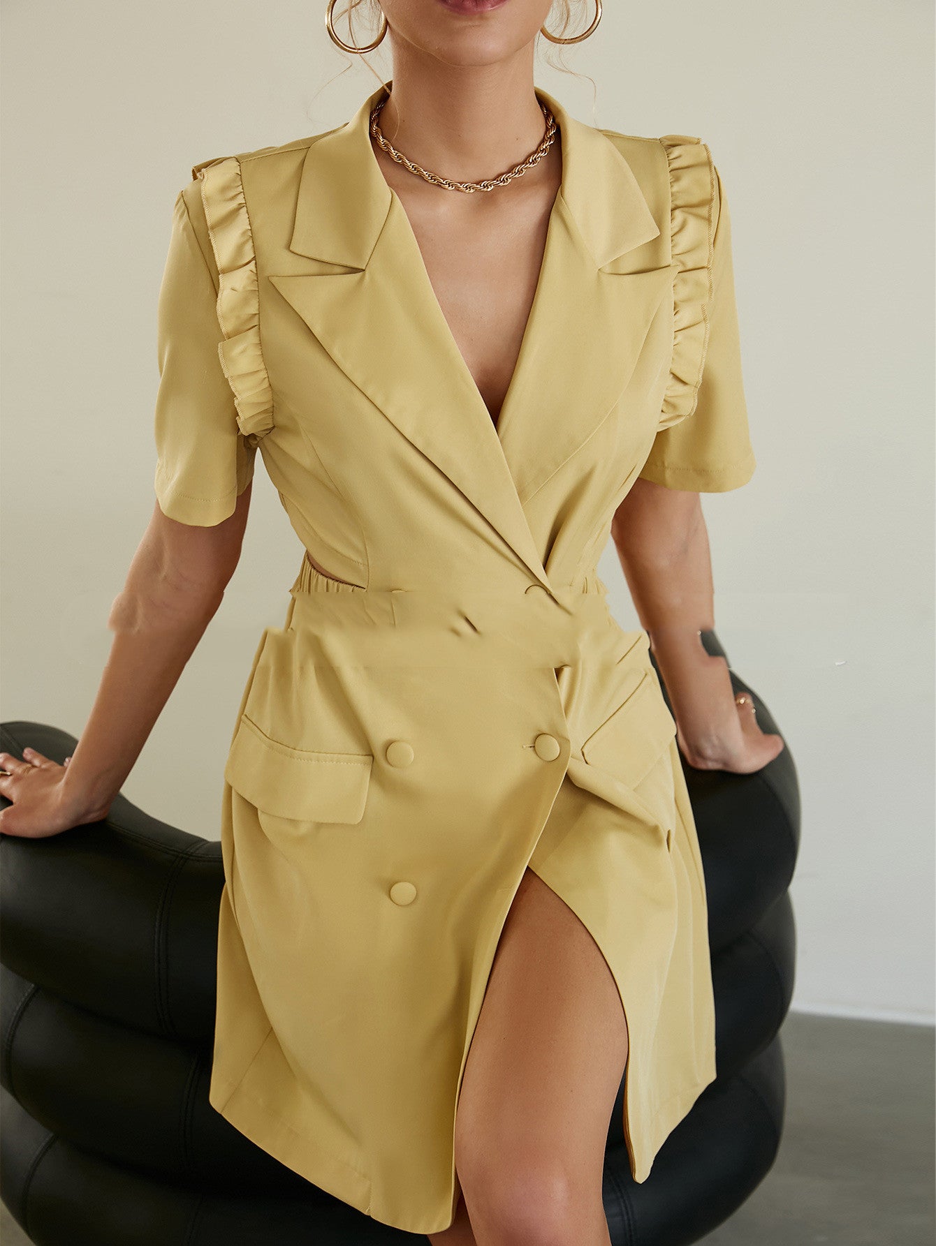 High Waist Temperament Commuter Solid Color Yellow Dress