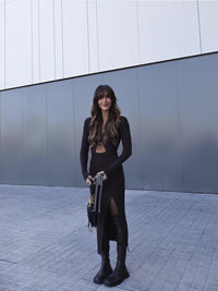 Ladies Fashion Design Sense Niche Knitted Dress - Dark brown / L