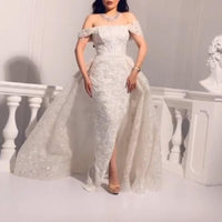 Short-sleeved Sequined Evening Gown - White / 2XL
