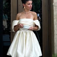 Simple Elegant Dress Solid Color Off-neck Socialite Style - White / L