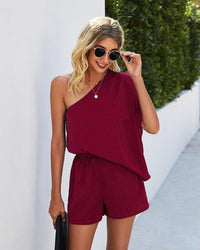 Summer Oblique Shoulder Solid Color High Waist Casual Women's Jumpsuit