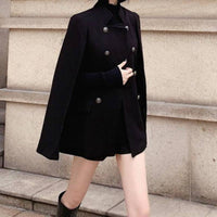 Black Cape Coat Versatile Loose Stand Collar Mid Length - Black / L