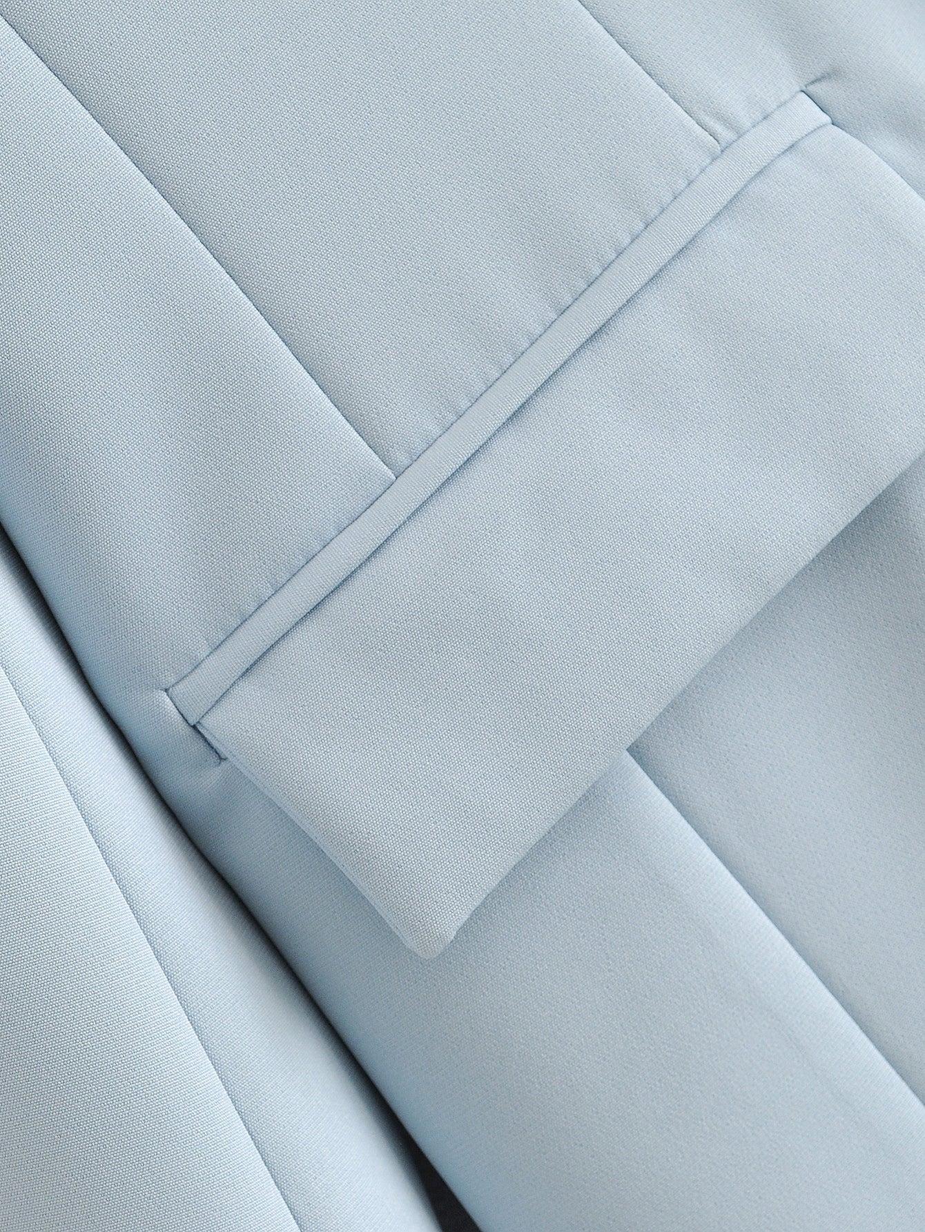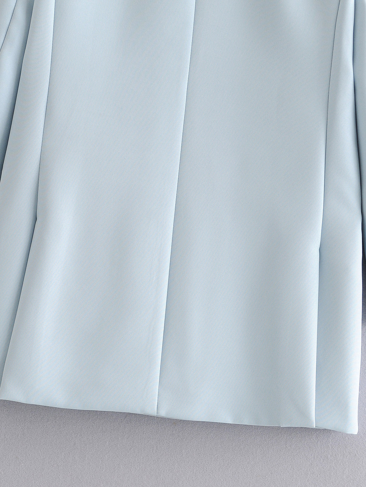 Blue Metal Double-breasted Suit Collar Mid-length Temperament