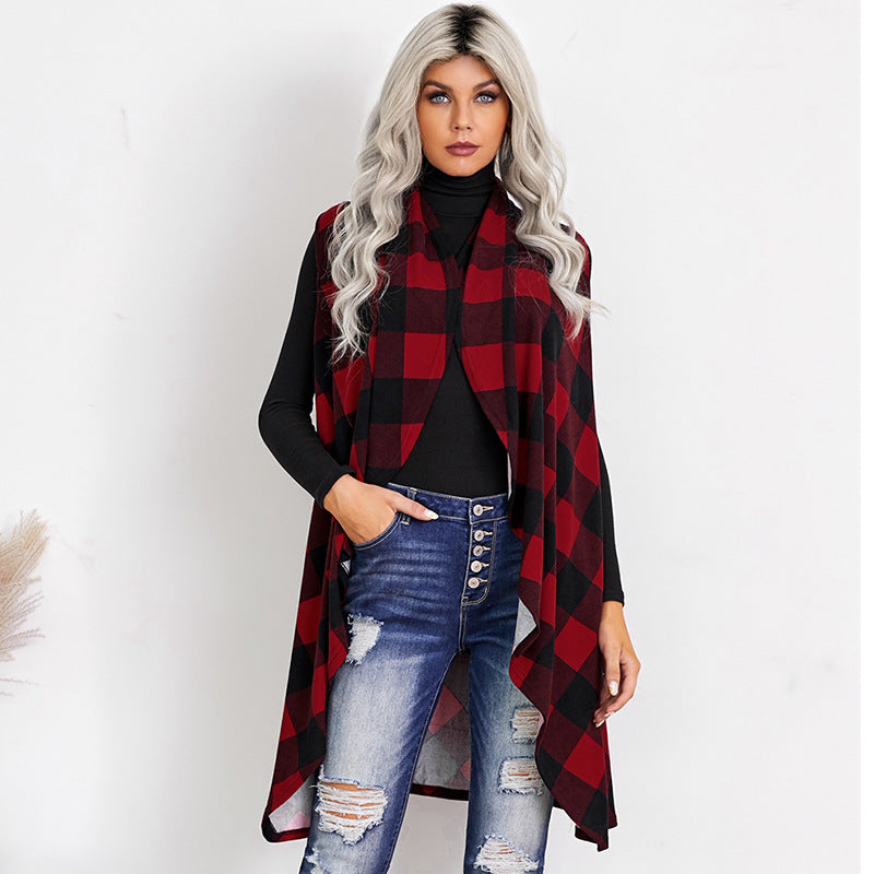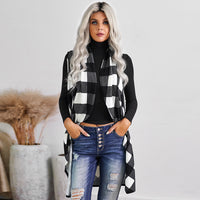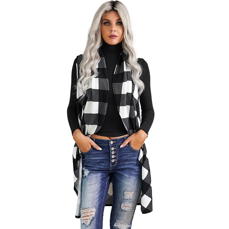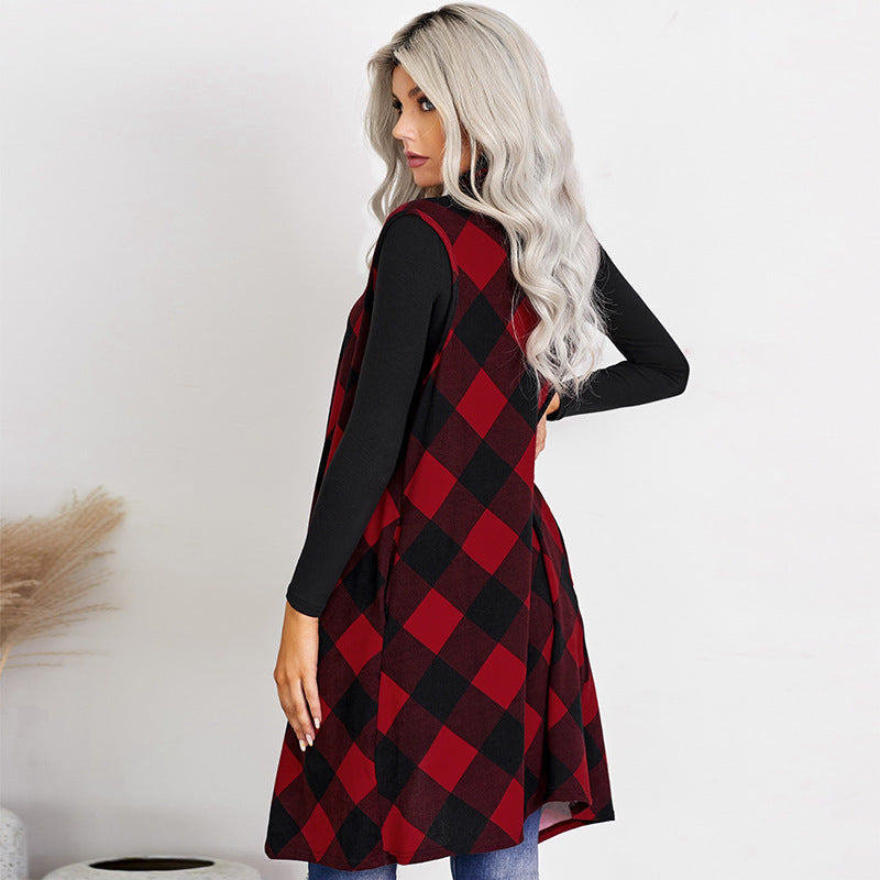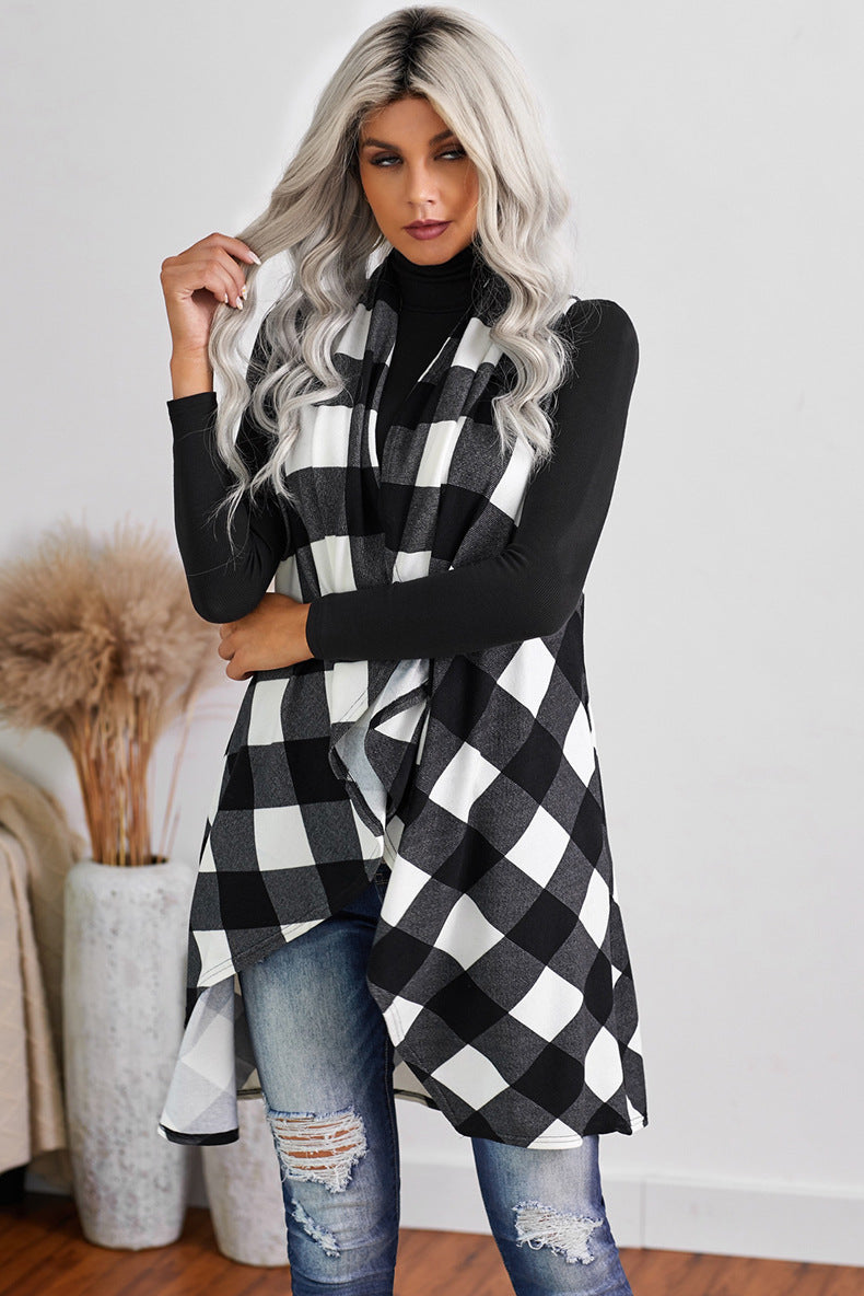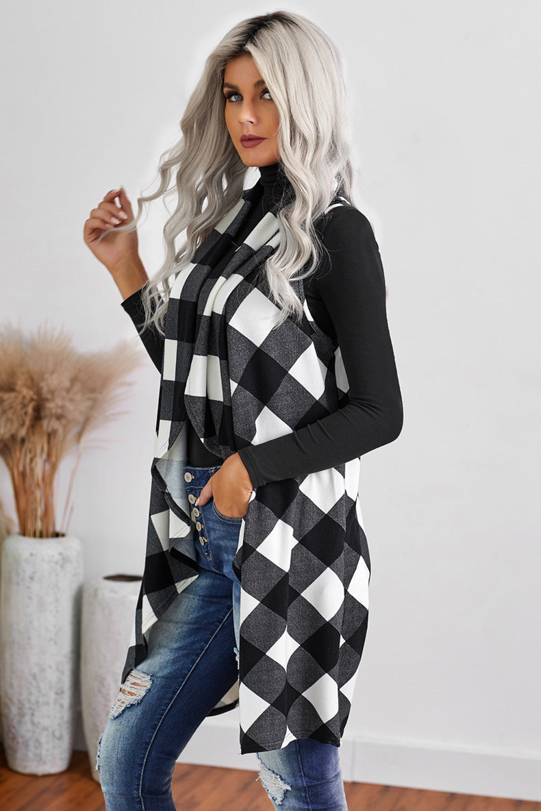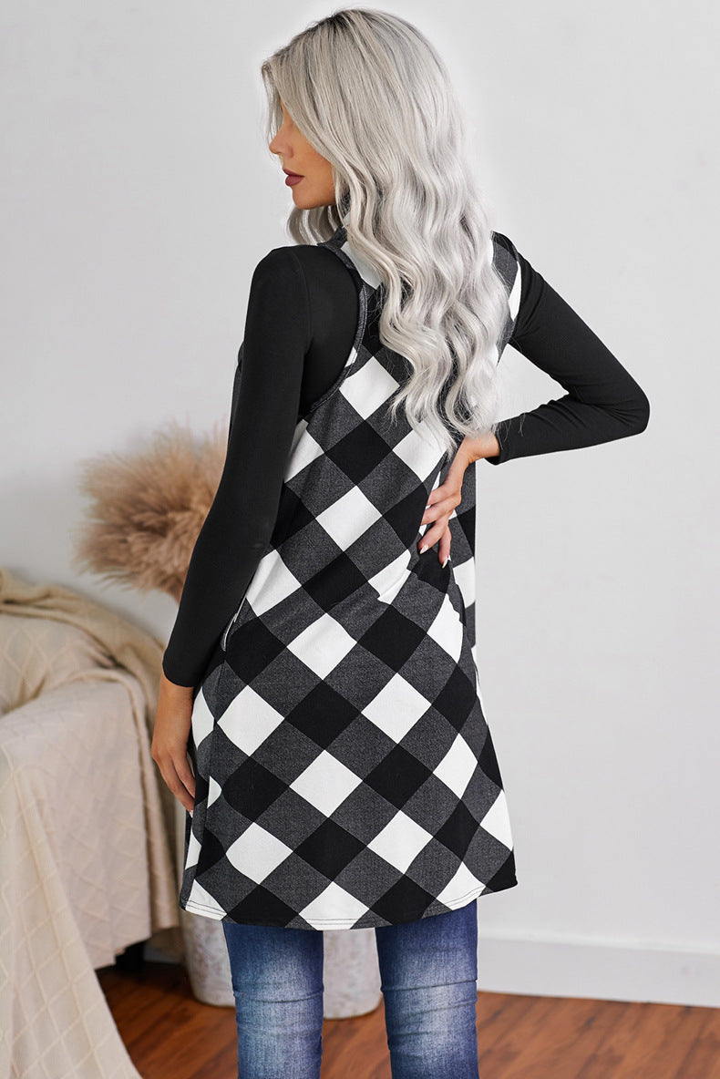 Casual Slim-fit Sleeveless Checked Sweater Coat