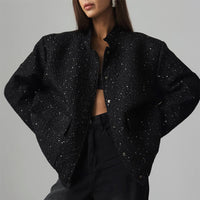 Gold Silk Sequin Jacket Women's Fashion Stand Collar - Black / L
