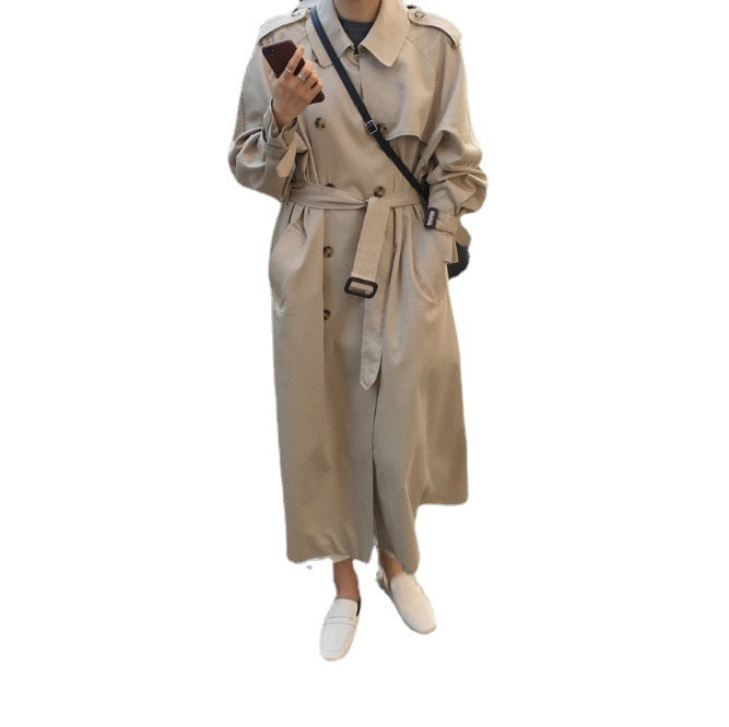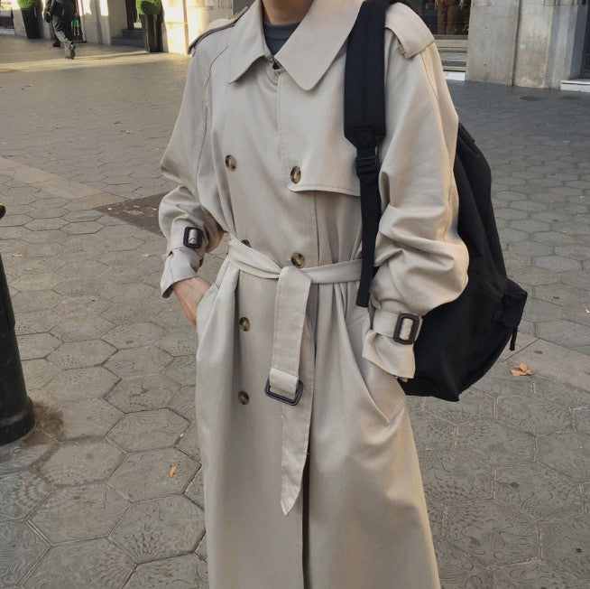 Loose Lace-up Waist Slim Mid-length Trench Coat