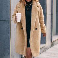 Loose Mid-length Plush Trench Coat - Apricot / L