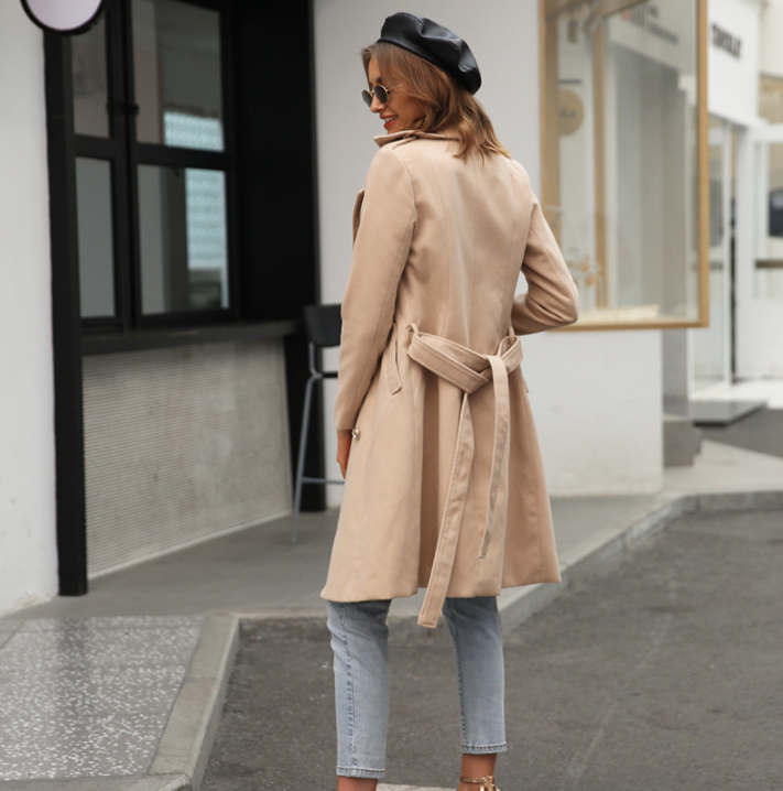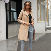 Sexy double-breasted suit collar slim trench coat - Khaki / L