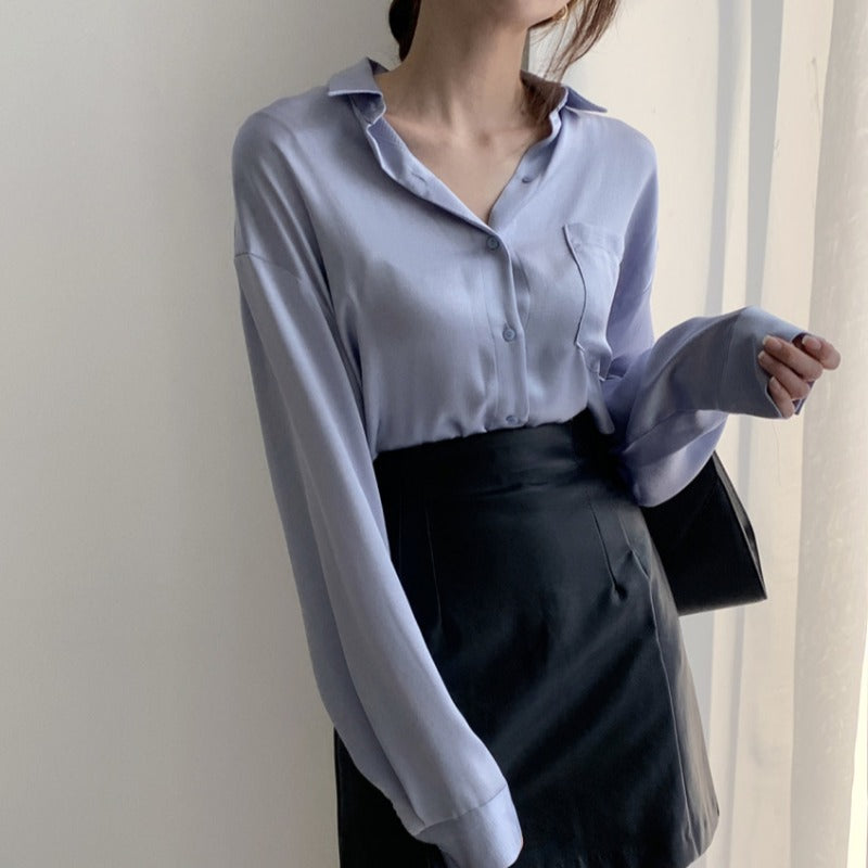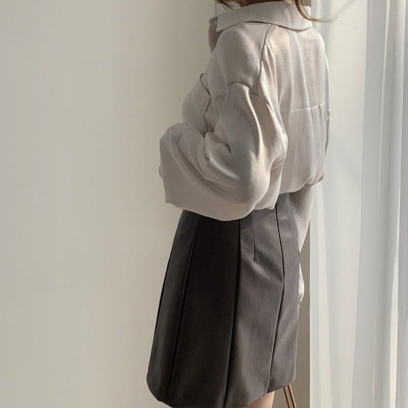 Color classification: blue shirt, gray apricot shirt, brown skirt,