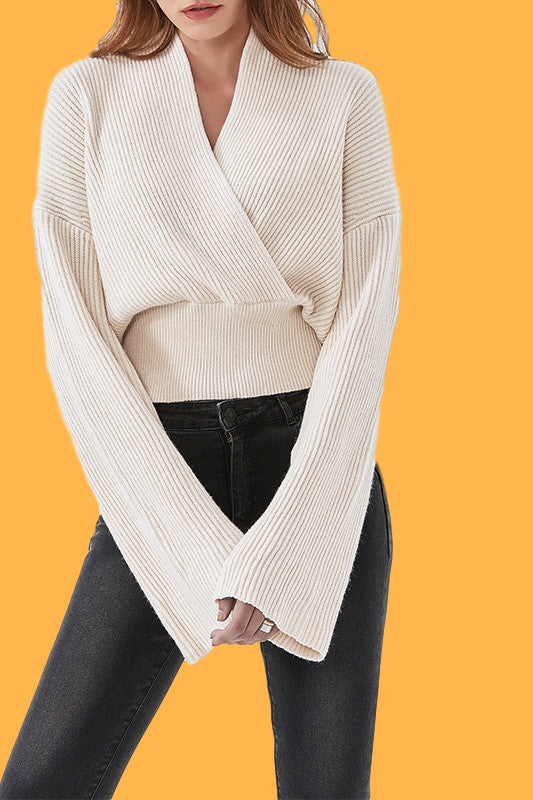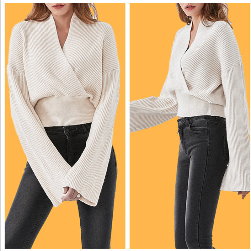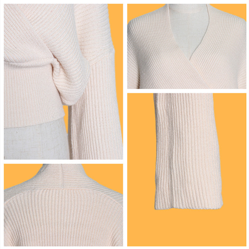 Super Long New Regular Sleeves V-neck Solid Color Waist High Waist Sweater Loose