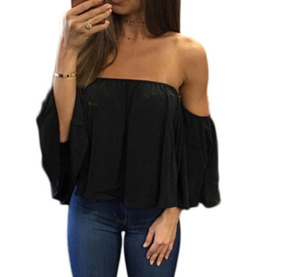 Wrapped chest collar long sleeve chiffon sexy top strapless loose T-shirt