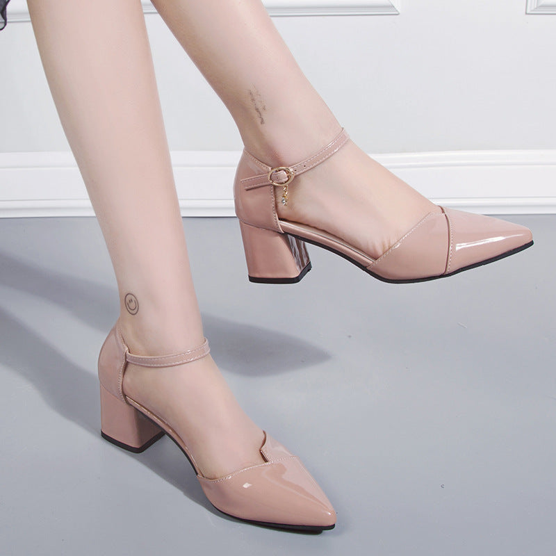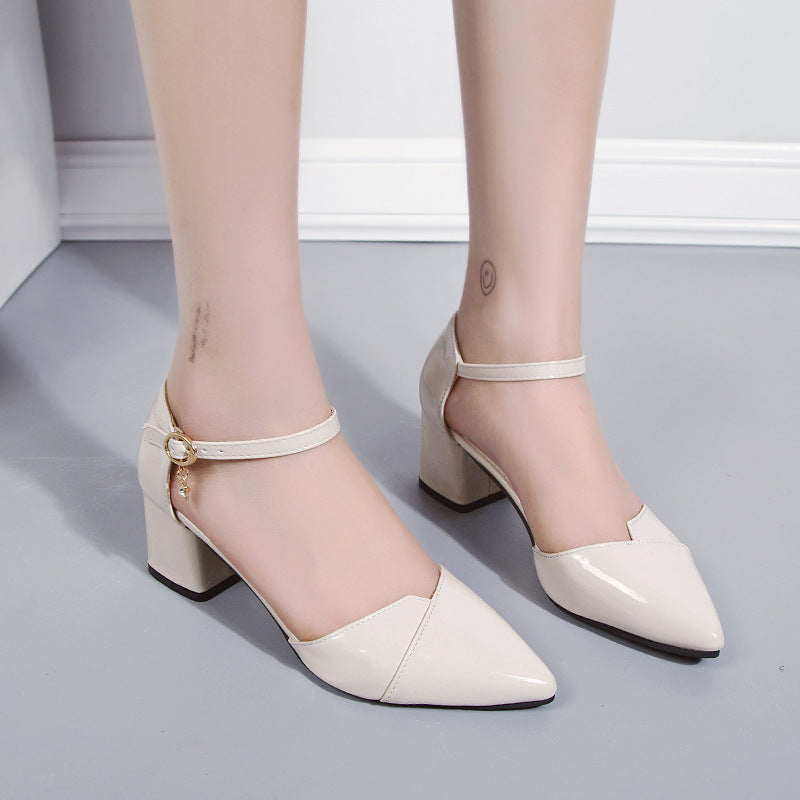 Baotou Hollow Chunky Heel Sandals With Pointed Toe Chunky Heels