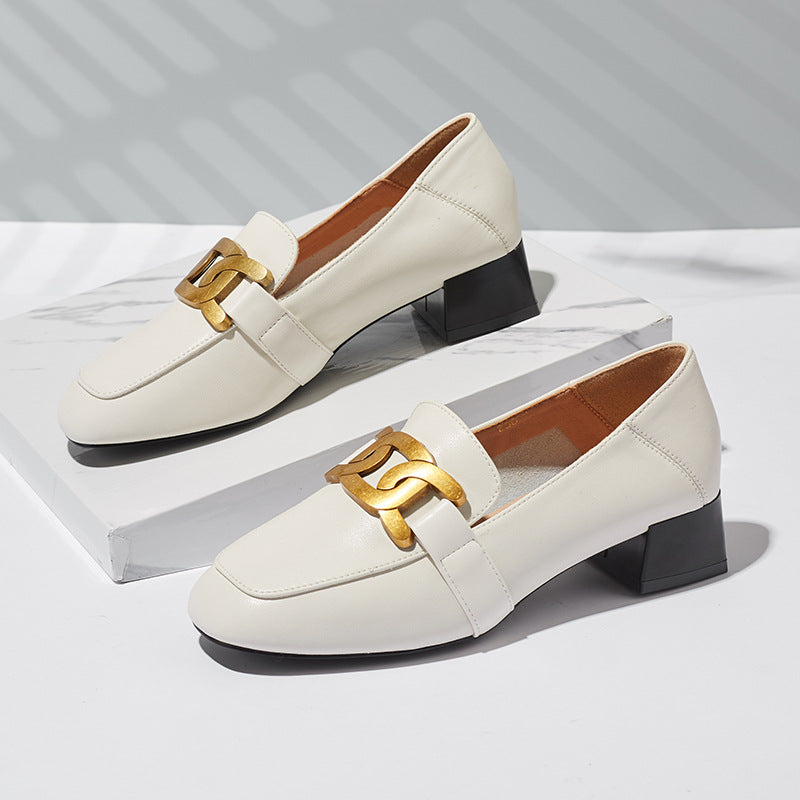 Fashion Thick-heeled Shoes Women's Leather One Pedal
