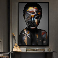 Geometric Makeup African Black Woman Canvas Painting Wall Art Poster - Black Woman / 100x150cm