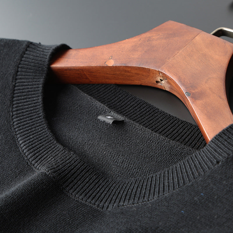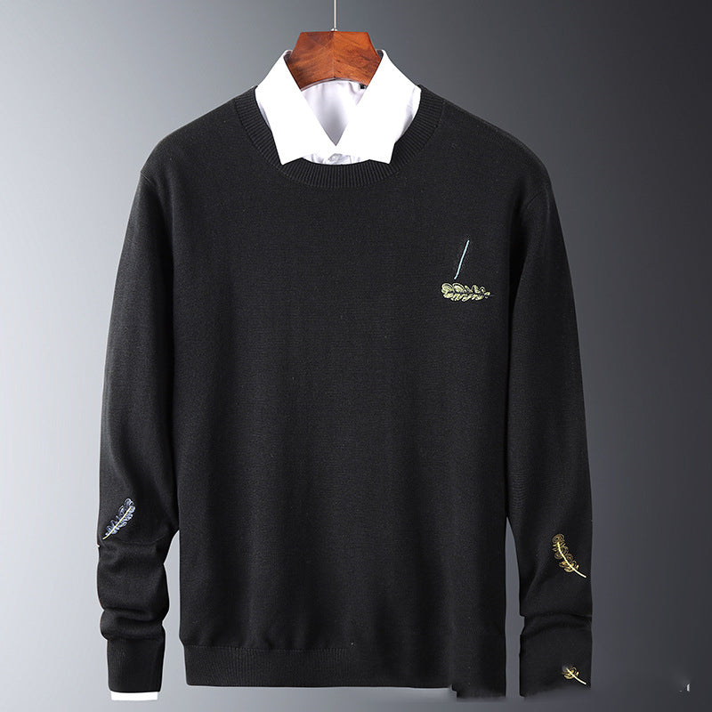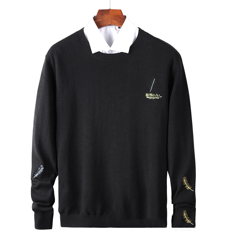 Korean Style Feather Embroidered Solid Color Knit Sweater Bottoming Tide Sweater - Black / 2XL