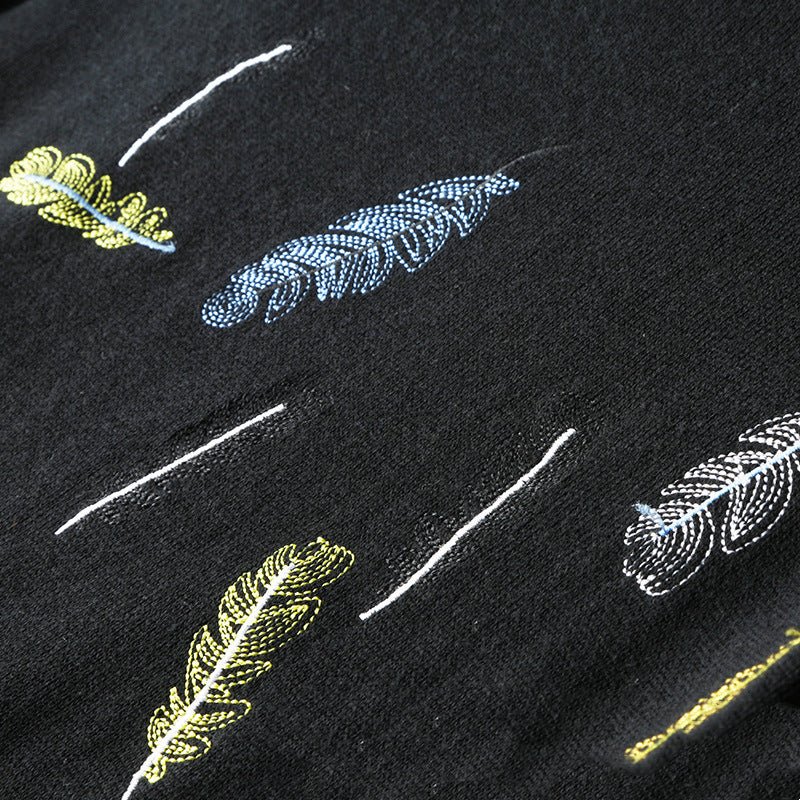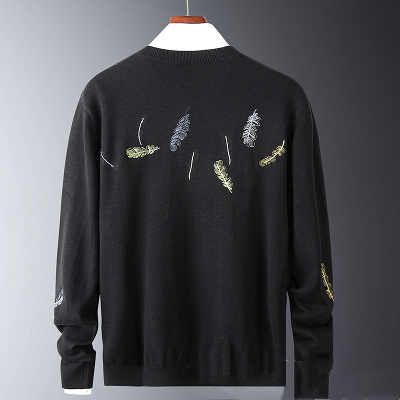 Korean Style Feather Embroidered Solid Color Knit Sweater Bottoming Tide Sweater