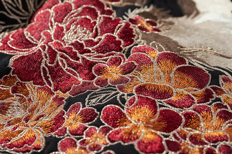 Men's Hoodie Sweater Chinese Style Full Width Embroidery - Black / 2XL