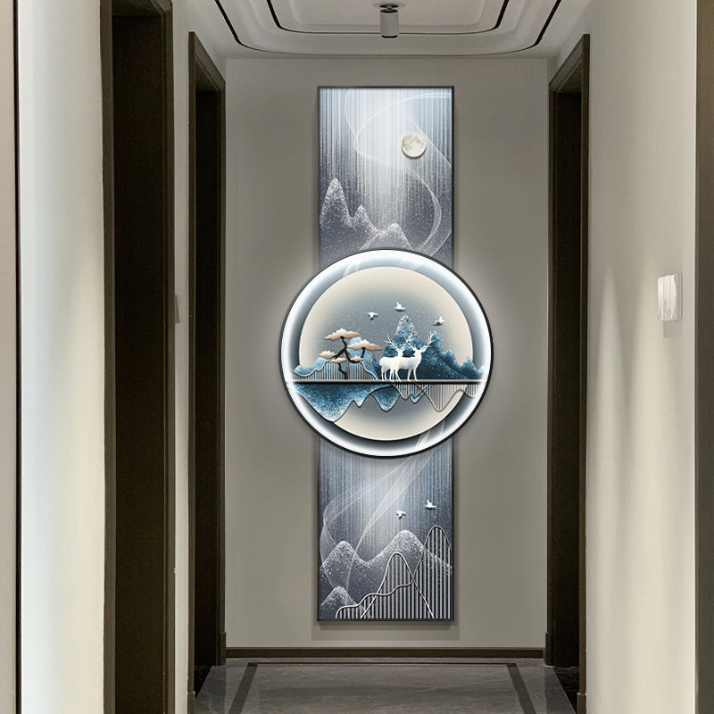 Porch Art Decorative Painting Wall Lamp Vertical Version Elk Led Living Room Corridor Aisle Bedroom - A / 35x140cm / US