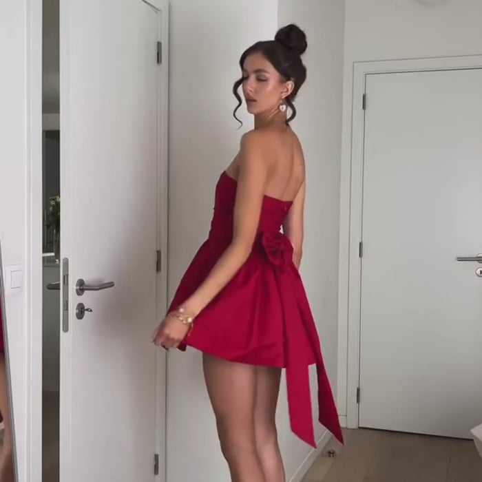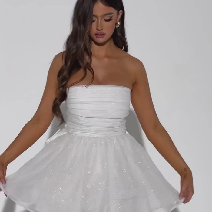 Tube Top Lace Dress With Back Stitching Off-neck Short Skirt