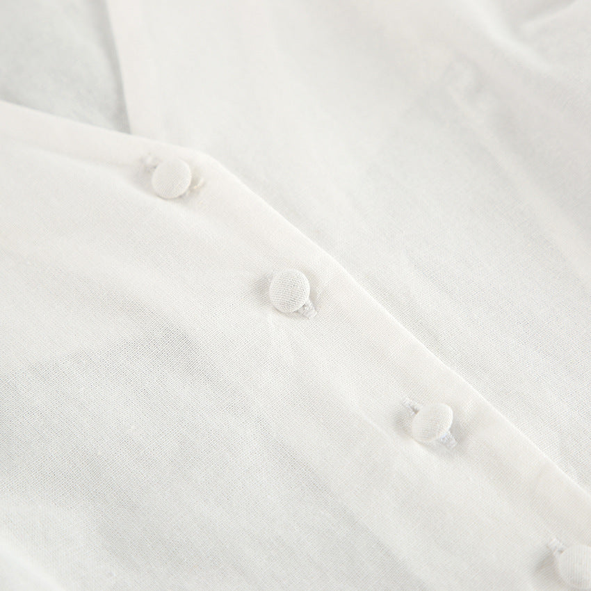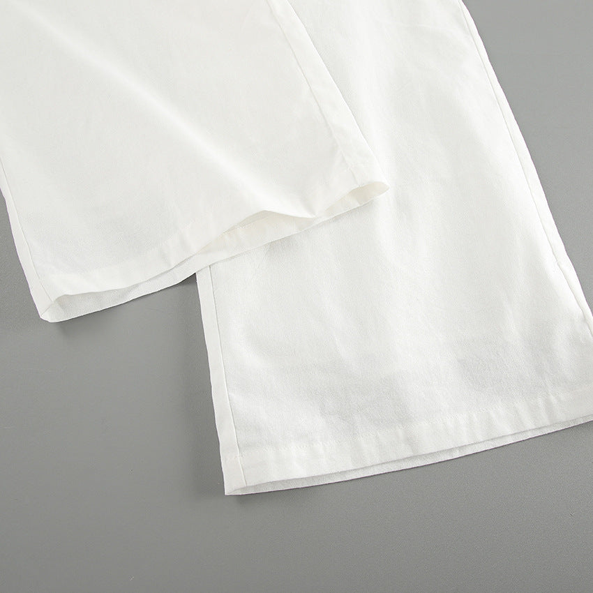 White Cotton Linen Sleeveless V-neck Vest Pants Suit