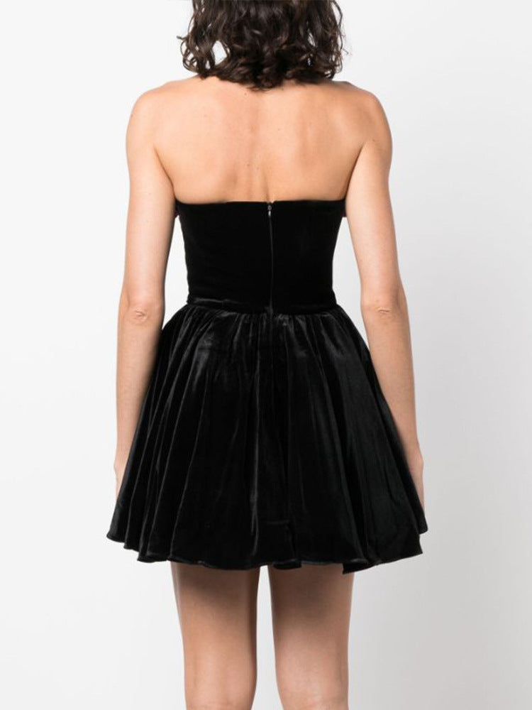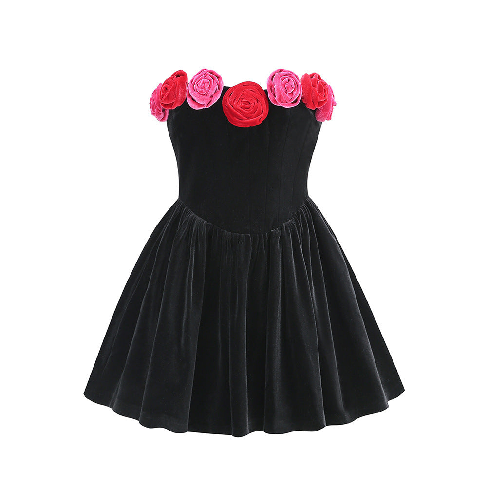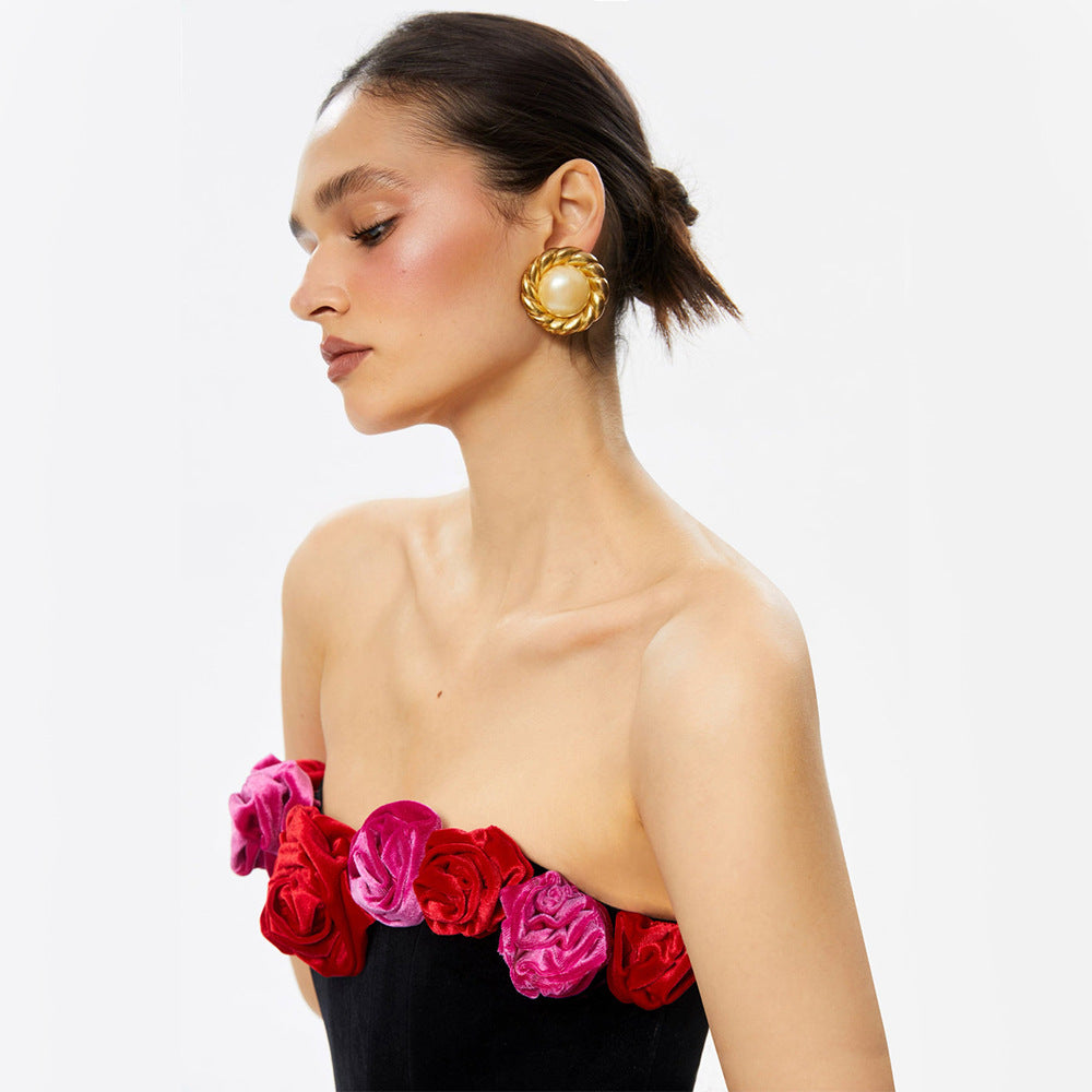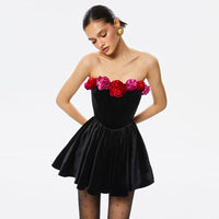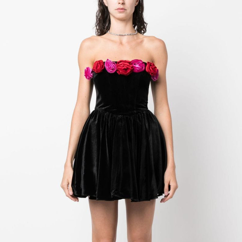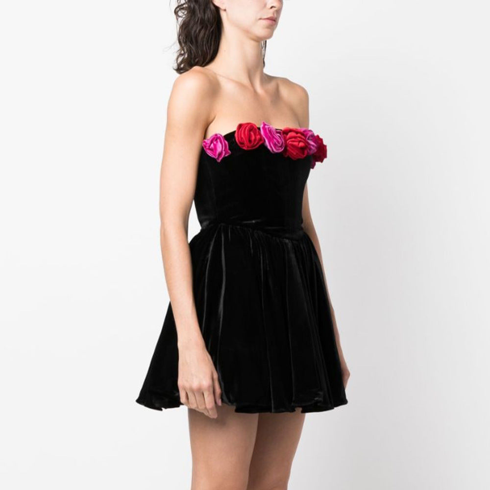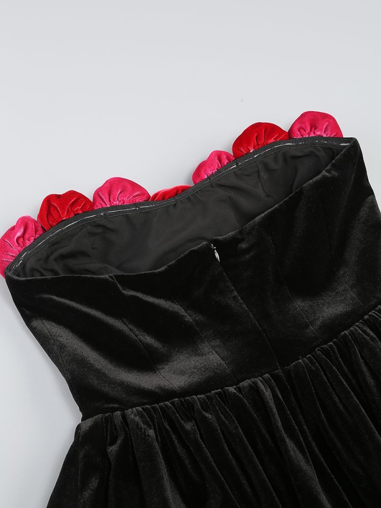 Women's Tube Top Flower Decoration Contrasting-color Dress