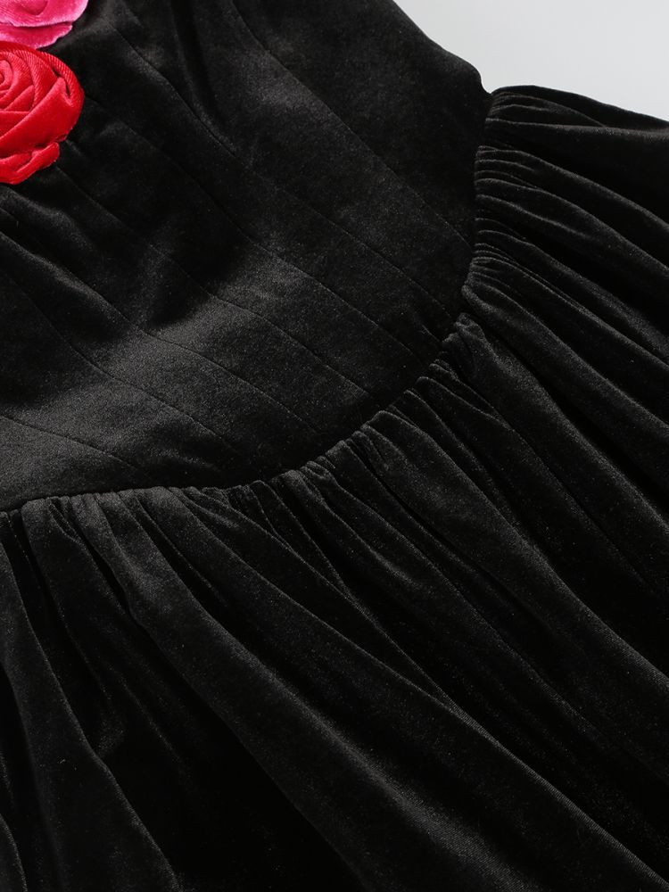 Women's Tube Top Flower Decoration Contrasting-color Dress - Black / L