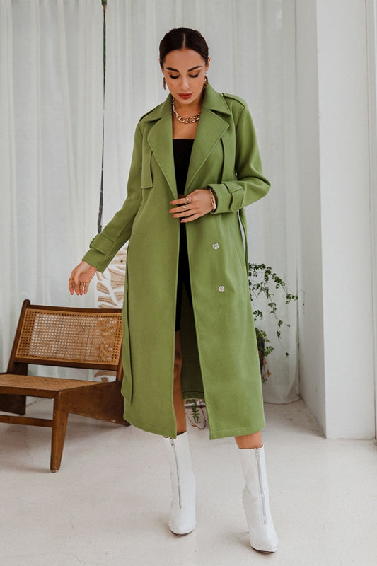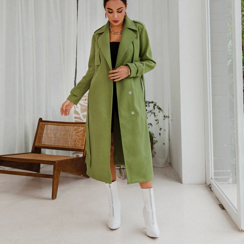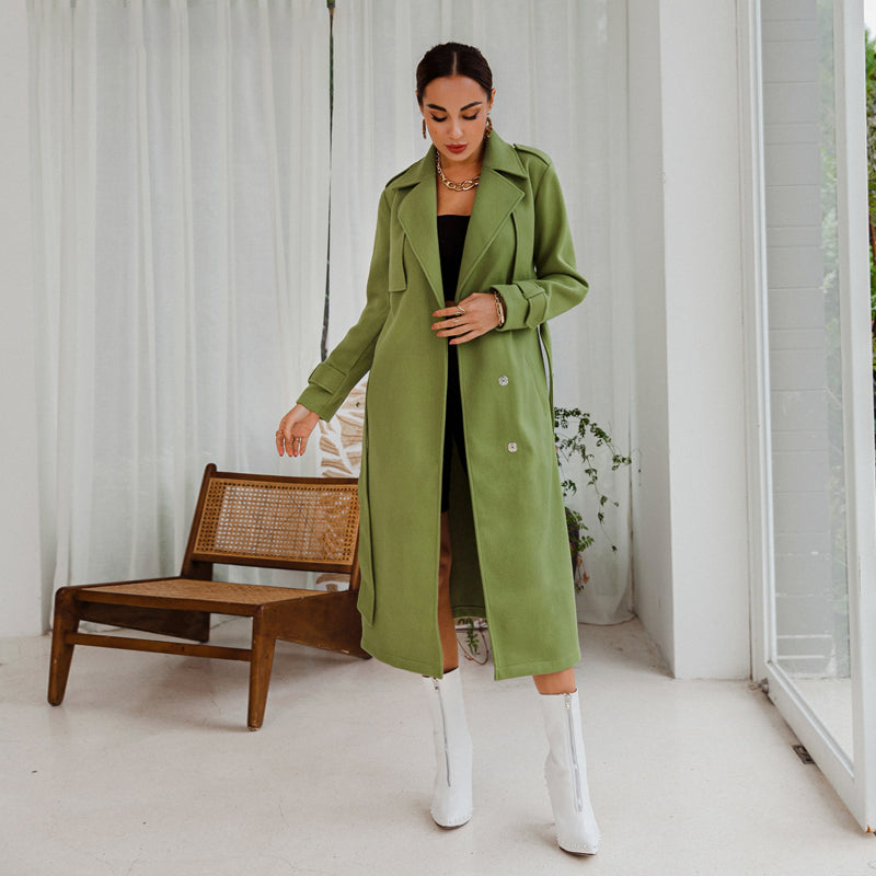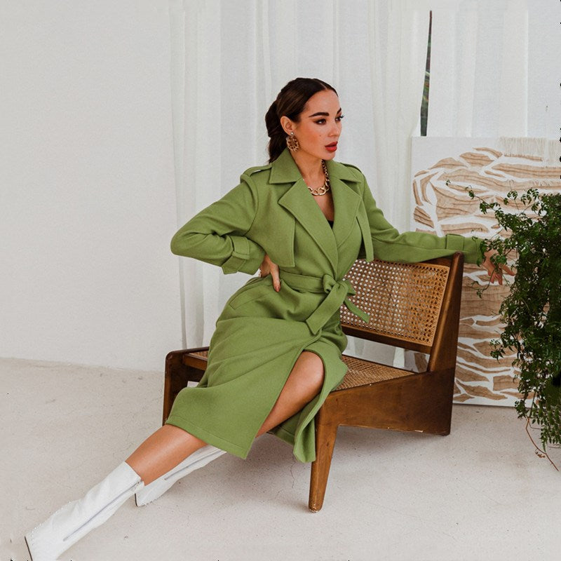 Women's Woolen Coat mid-length Loose Over-the-knee Woolen Coat - Green / L